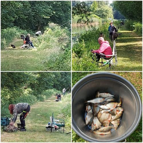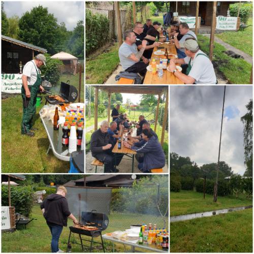 Bei schönem Wetter starten wir unser Angeln 🎣. Nach der Siegerehrung 🏅stärkten wir uns 🍗🧋. Nach dem Essen 🍽 fing es an zu regnen ⛈ und wir überbrückten die Zeit ⏱ noch eine ganze Weile mit Gesprächen 🧐, bis es aufhörte zu regnen 🌞.
